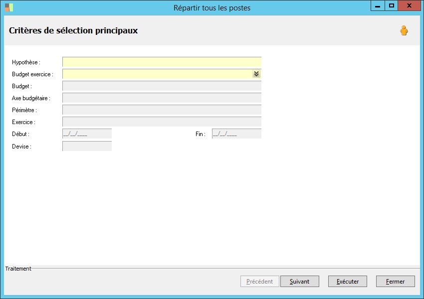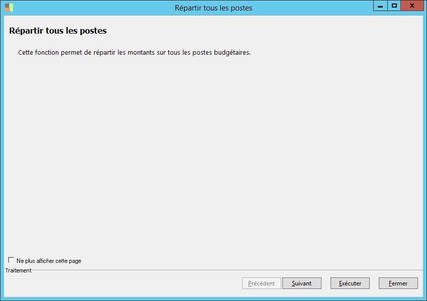 (Sage FRP 1000 Comptabilité) Menu Budget > Hypothèses > Répartir tous les postes