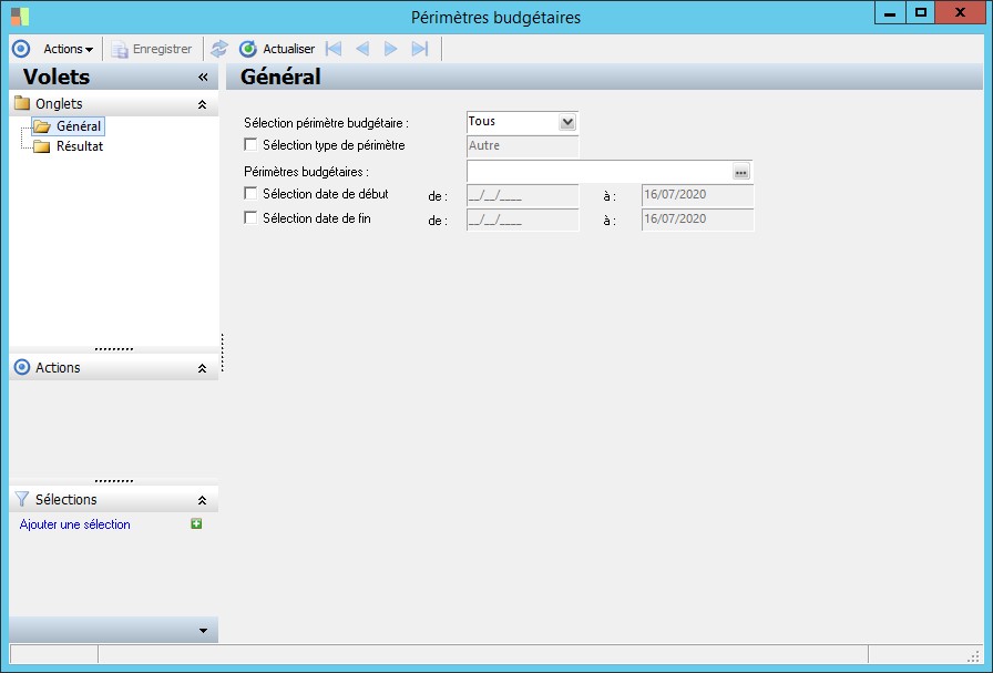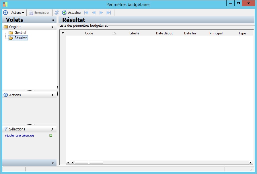 (Sage FRP 1000 Comptabilité) Menu Budget > Paramètres > Périmètres budgétaires
