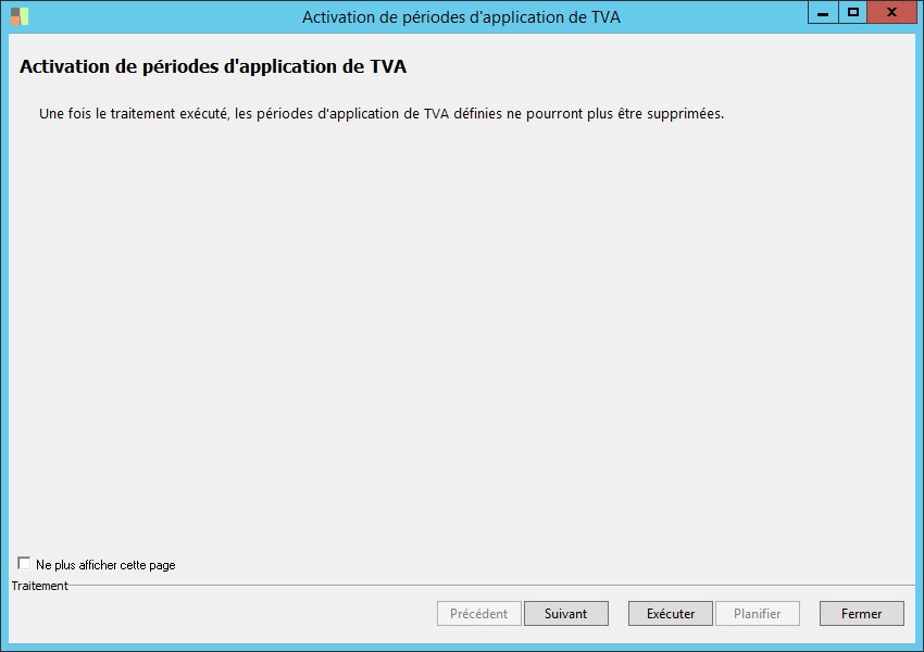 (Sage FRP 1000 Comptabilité) Menu Campagne > Campagnes > Activation de périodes d'application de TVA