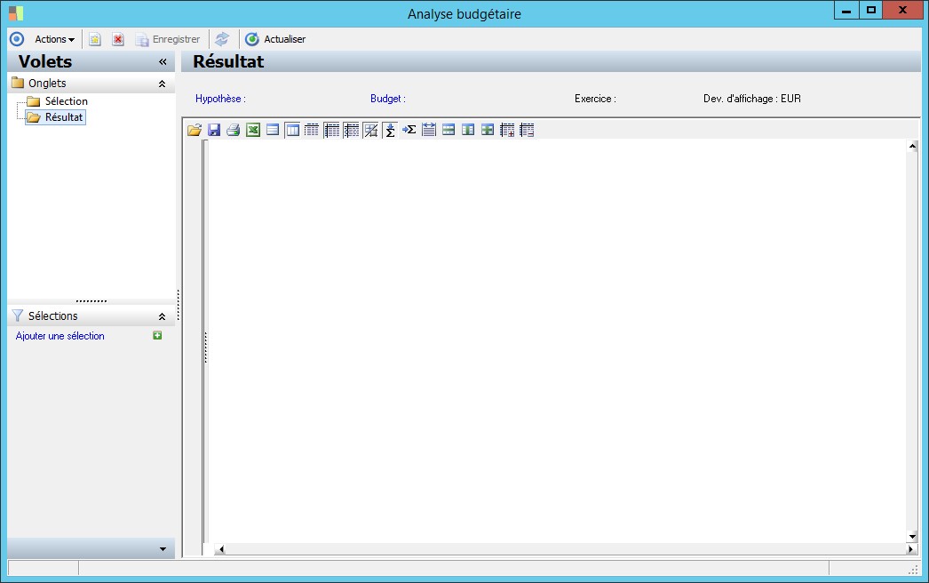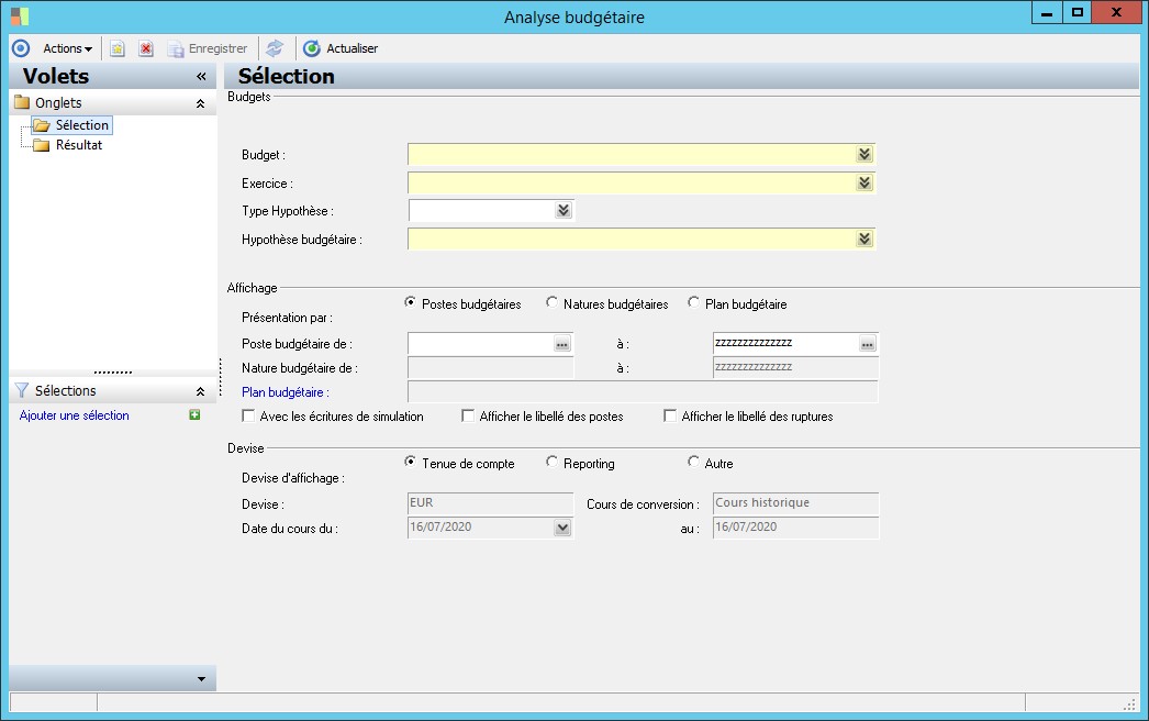 (Sage FRP 1000 Comptabilité) Menu Budget > Analyses > Analyse budgétaire