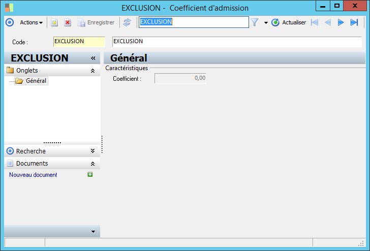 (Sage FRP 1000 Comptabilité) Menu Notes de Frais > Paramètres > Comptabilité générale > Coefficient d'admission