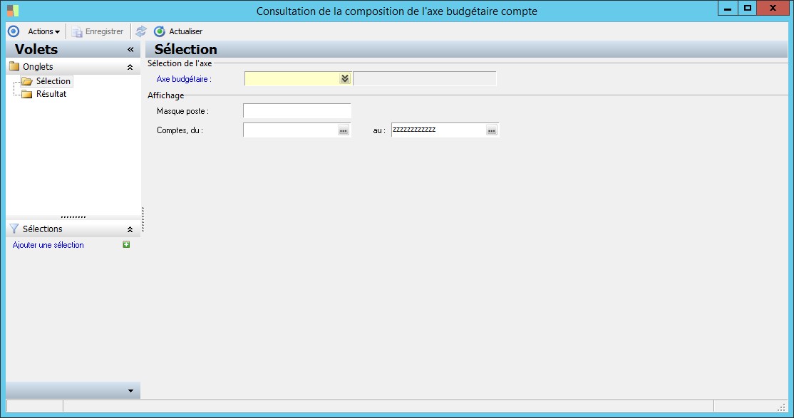 (Sage FRP 1000 Comptabilité) Menu Budget > Paramètres > Consultation de la composition de l'axe budgétaire compte