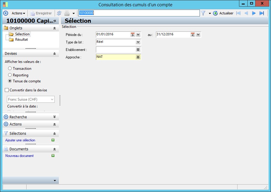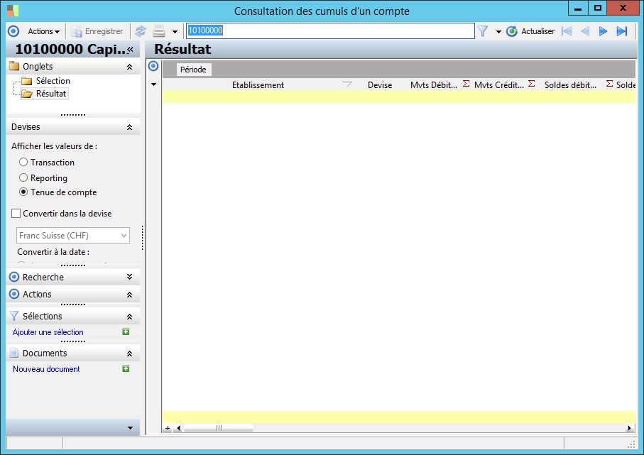 (Sage FRP 1000 Comptabilité) Menu Comptabilité Groupe > Fichiers de base > Consultation des cumuls d'un compte