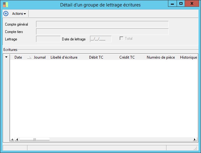 (Sage FRP 1000 Comptabilité) Menu Comptabilité Groupe > Fichiers de base > Détail d'un groupe de lettrage écritures