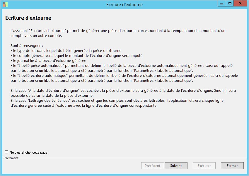 Lorsque cet attribut est activé, l'extourne sera réalisée à la date de l'écriture d'origine, sinon l'utilisateur peut saisir la date de l'extourne. |