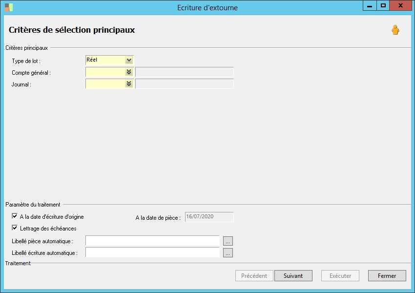 Cette sélection précise le type de lot contenant l'écriture d'extourne : Réel ou simulation. |