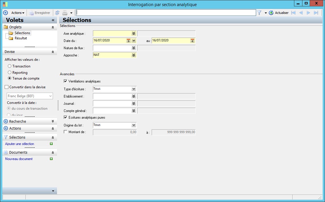 (Sage FRP 1000 Comptabilité) Menu Comptabilité Groupe > Générale > Interrogation par section analytique