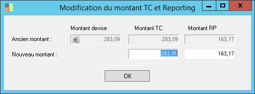 (Sage FRP 1000 Comptabilité) Menu Notes de Frais > Notes de frais > Modification du montant TC et Reporting