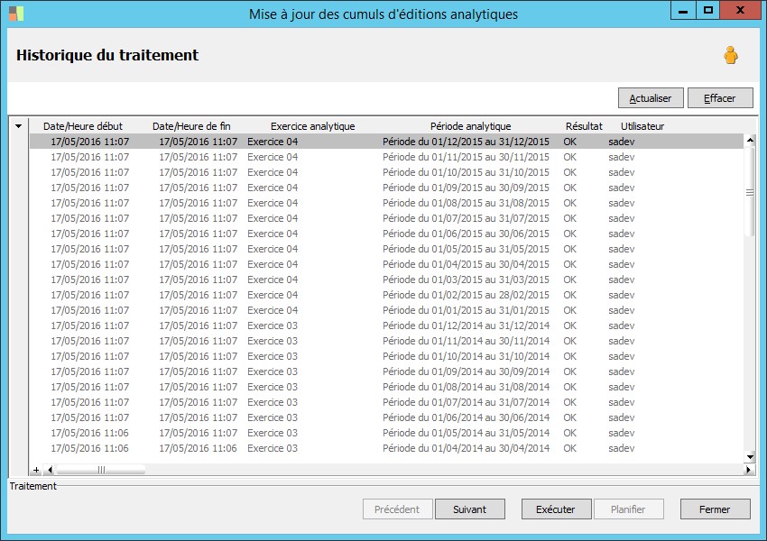 Cette zone mentionne l'exercice analytique sur lequel a été appliqué le traitement. |