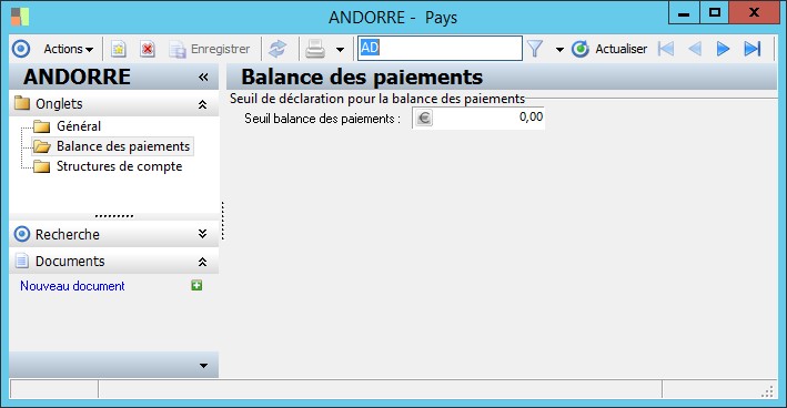 Permet de renseigner le montant de seuil pour la déclaration à la balance des paiements. |