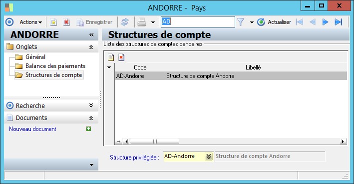 Liste des structures de comptes bancaires |