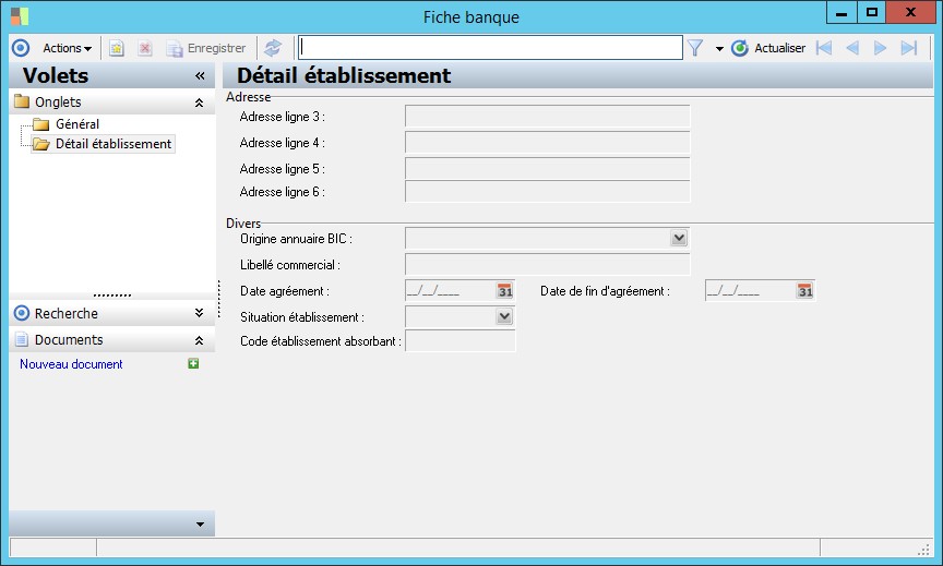 (Sage FRP 1000 Comptabilité) Menu Banque Paiement > Paramčtres > Banques > Fiche banque