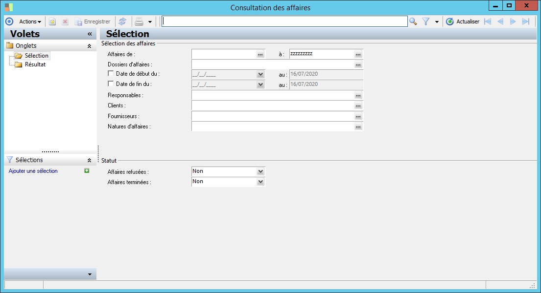 Permet d'indiquer que l'affaire est terminée, soit parce qu'elle a été refusée, soit parce qu'elle a réellement atteint son terme. L'affaire doit être déclarée terminée pour être prise en compte dans la déclaration de TVA (TVA sur marge par affaire). |