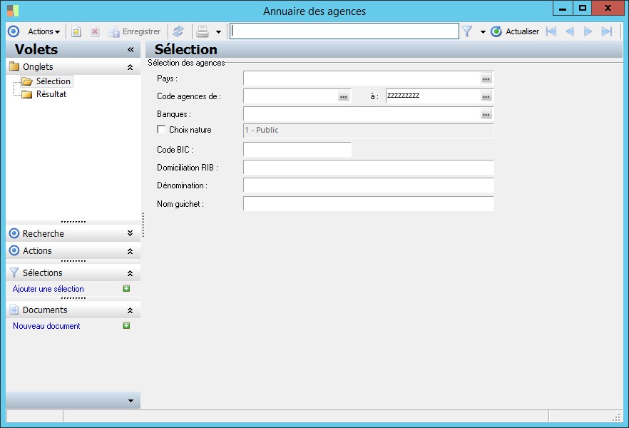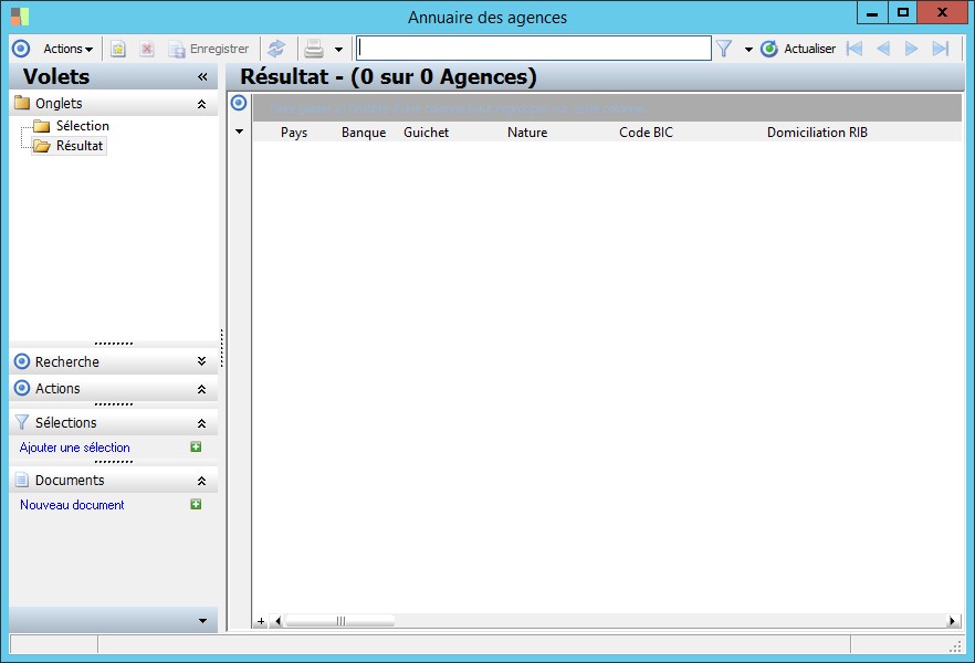 (Sage FRP 1000 Comptabilité) Menu Banque Paiement > Paramètres > Banques > Annuaire des agences