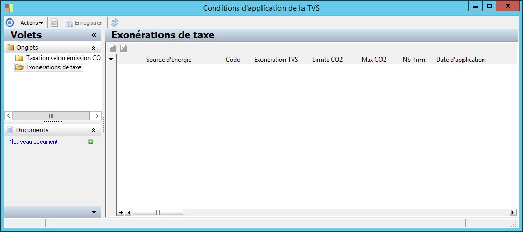Cet attribut permet d'indiquer le taux maximum d'émission de Co2 pour lequel une éxonération de T.V.S. pour la source d'énergie sélectionnée est possible.Cette zone ne sera à saisir que si la case indiquant que l'exonération est fonction d'un taux maximum de Co2 est cochée. |