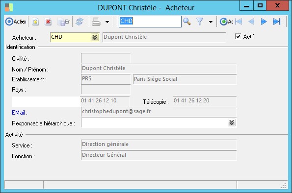 Enregistrez dans cette zone le nom du responsable hiérarchique de la personne en cours de saisie. |