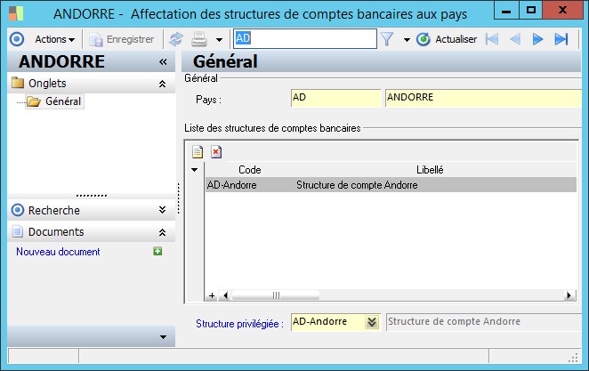 Avant de réaliser toute affectation, il est nécessaire d'avoir paramétré les pays ainsi que les structures de comptes bancaires.