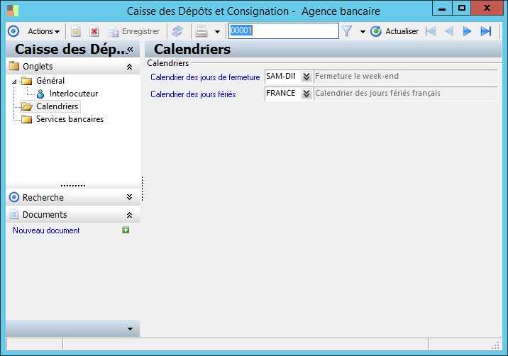 Le calendrier des jours de fermeture indique les jours de la semaine pendant lesquels l'agence est fermée. |