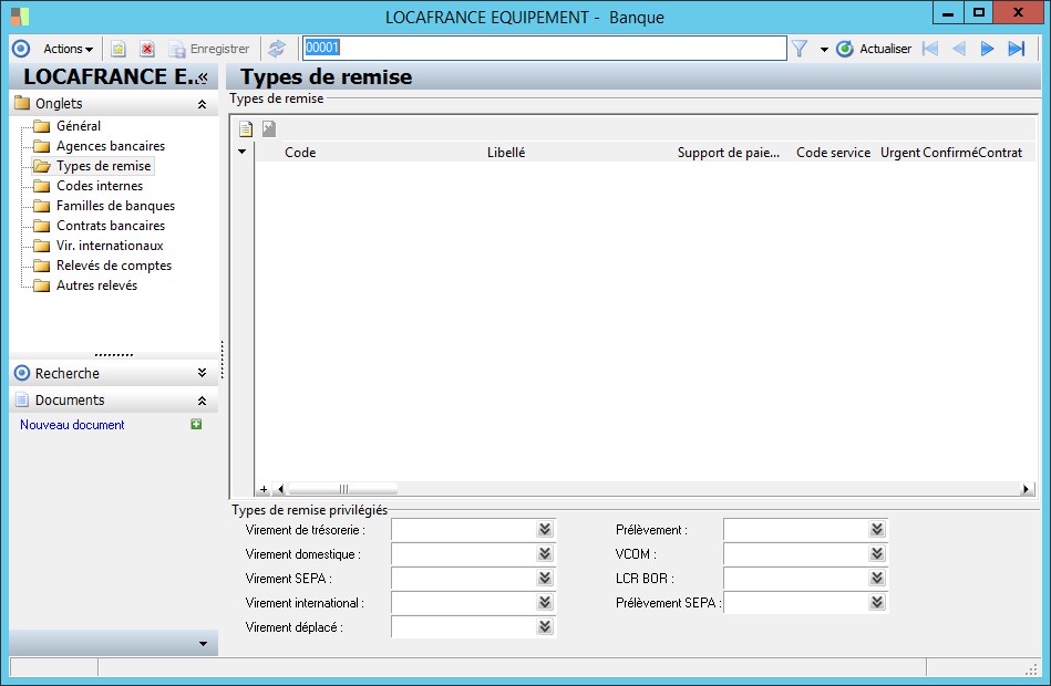 Cette classe regroupe les contrats bancaires établis avec les différentes banques des sociétés. |