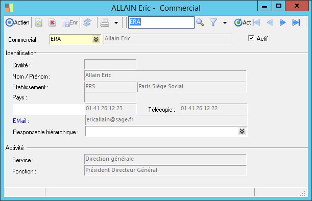 Enregistrez dans cette zone le nom du responsable hiérarchique de la personne en cours de saisie. |
