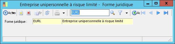 (Sage FRP 1000 Comptabilité) Menu Comptabilité Groupe > Paramètres > Généraux > Forme juridique
