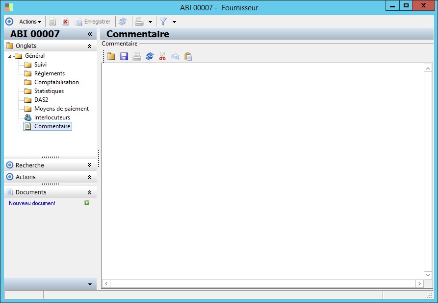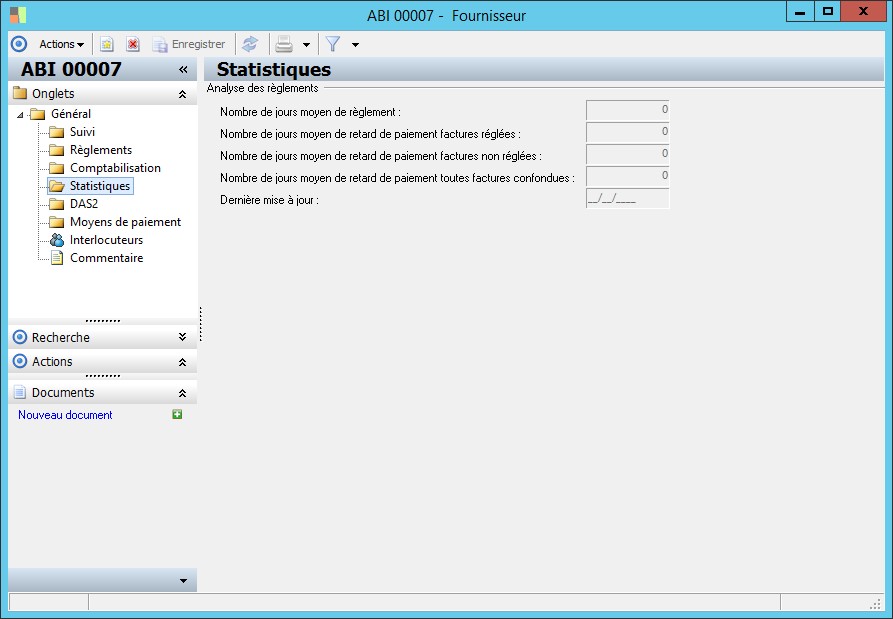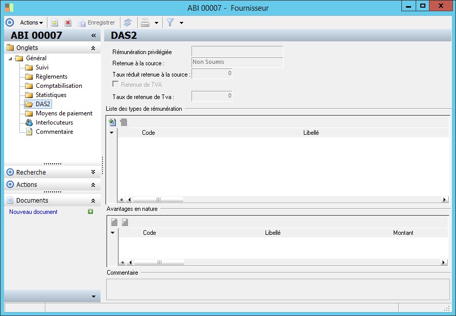 Le code d'un fournisseur ne doit pas comporter de caractère « joker » tel %, ? ou _.Cette restriction s'applique à toutes les fonctions dont les éléments sont repérés par un code. |