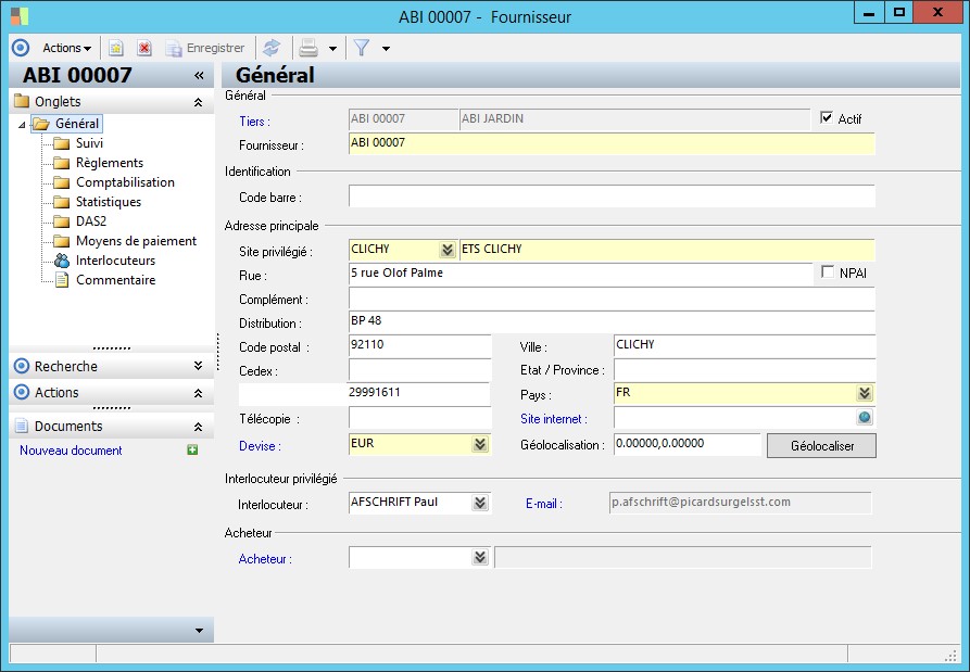 Un acheteur peut être associé au fournisseur : il s'agit d'un contact établissement ayant le rôle acheteur. |