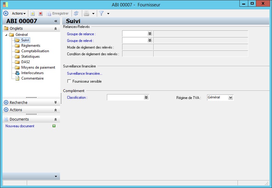 Le régime TVA doit être précisé par fournissseur pour pouvoir établir les déclarations de TVA. |