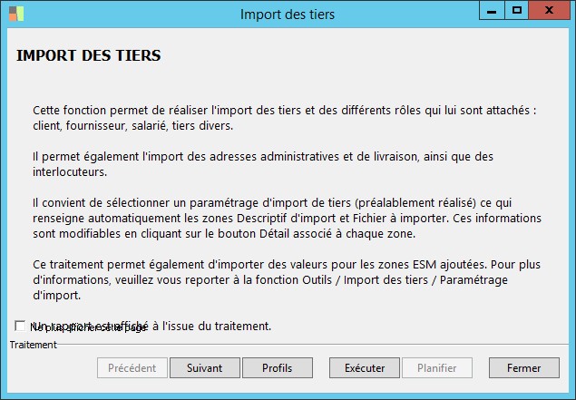 (Sage FRP 1000 Comptabilité) Menu Banque Paiement > Initialisation > Import des tiers