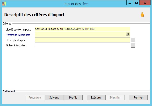 Vous devez sélectionner un paramètre import pour pouvoir procéder au traitement. |