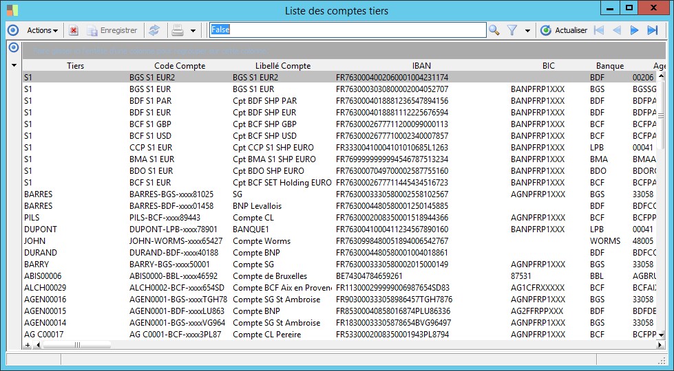 (Sage FRP 1000 Comptabilité) Menu Banque Paiement > Paramètres > Banques > Liste des comptes tiers