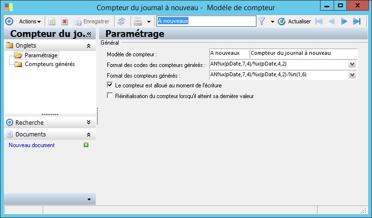 Compteur généré par modèle et on enregistre le modèle de compteur ainsi modifié. Les factures d'achat seront désormais numérotées FAC 000002.