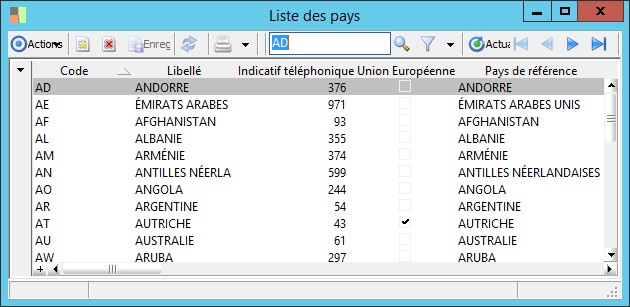 (Sage FRP 1000 Comptabilité) Menu Comptabilité Groupe > Paramètres > Généraux > Liste des pays