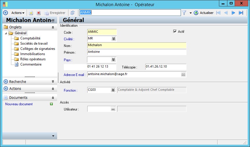 (Sage FRP 1000 Comptabilité) Menu Campagne > Campagnes > Opérateur