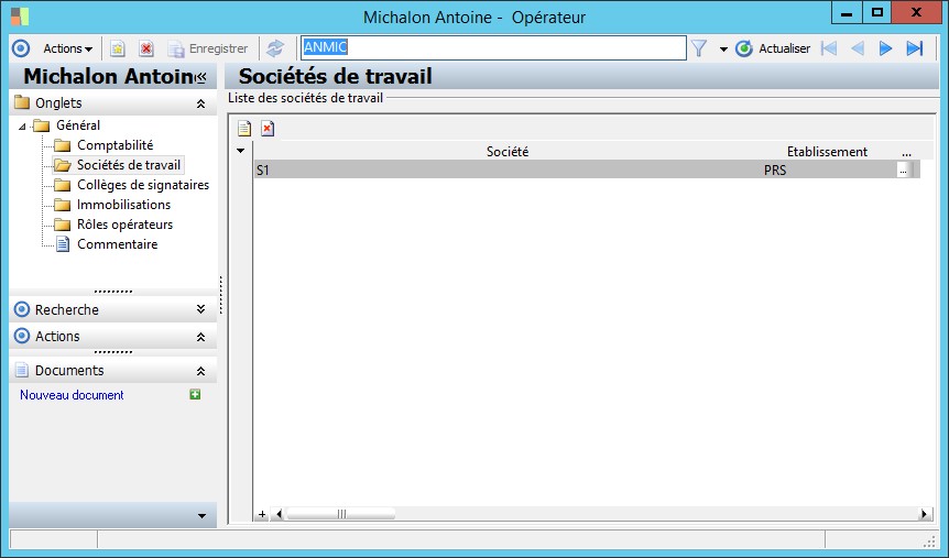 Dans la fenêtre Opérateurs, la présence des fonctions décrites dans ce contexte dépend des applications installées. |