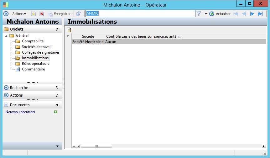 Cette zone indique si l'utilisateur est autorisé ou non à saisir des biens sur les exercices précédents. |