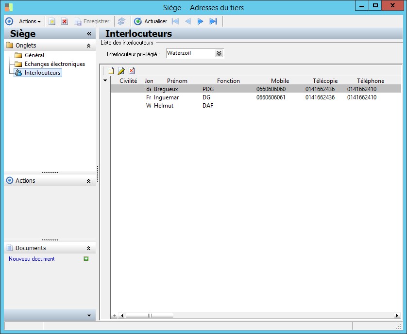 Cette zone permet de renseigner le numéro de télécopie de la personne.