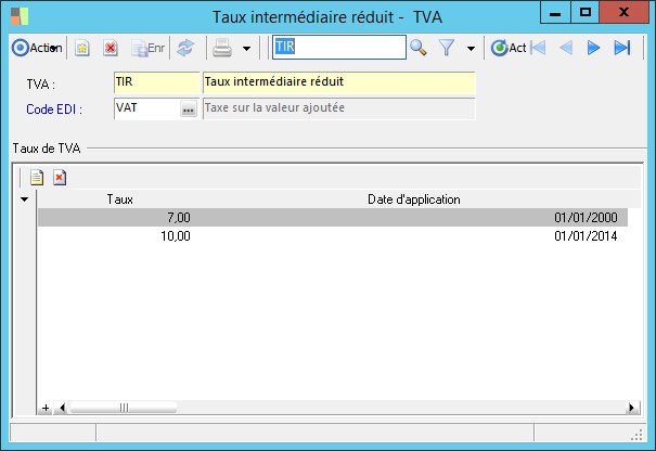 La date d'application donne la date à partir de laquelle le taux de TVA s'applique. |
