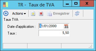 La date d'application donne la date à partir de laquelle le taux de TVA s'applique. |