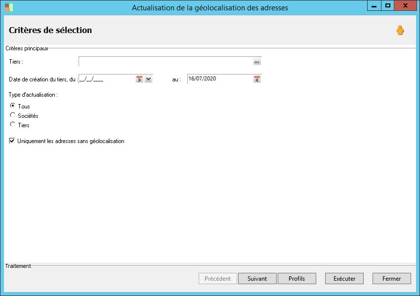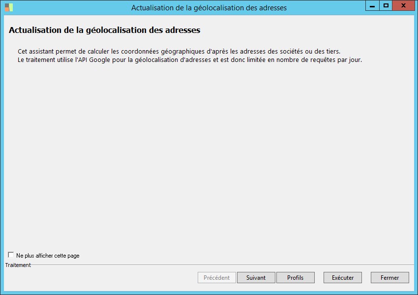 (Sage FRP 1000 Comptabilité) Menu Campagne > Campagnes > Actualisation de la géolocalisation des adresses