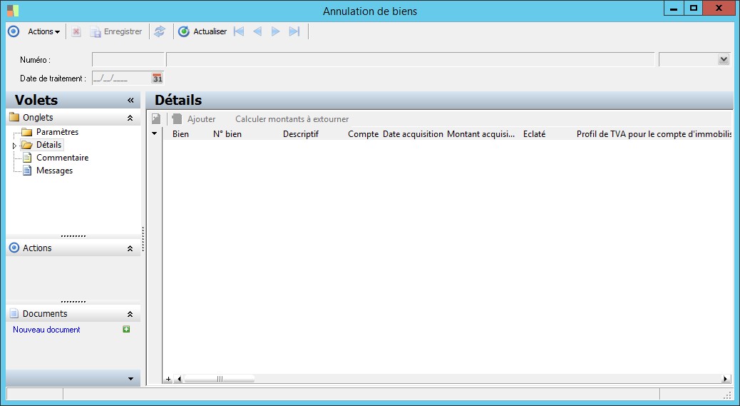 Cette zone affiche le bien comptable concerné. |