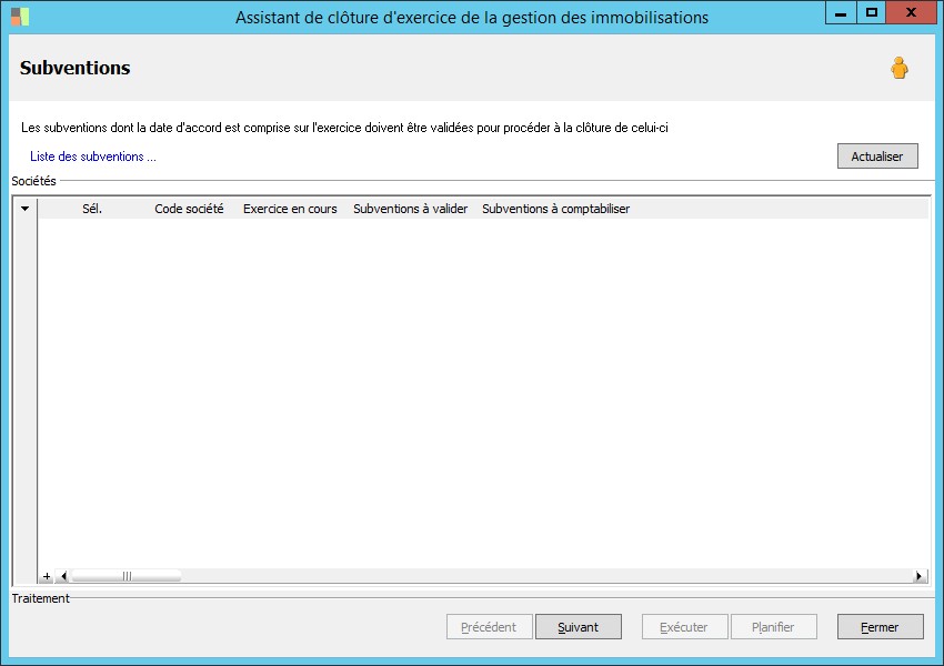 Cette zone indique qu'il existe des subventions non validées sur la période (si la case est cochée, il n'est pas possible de clôturer l'exercice). |