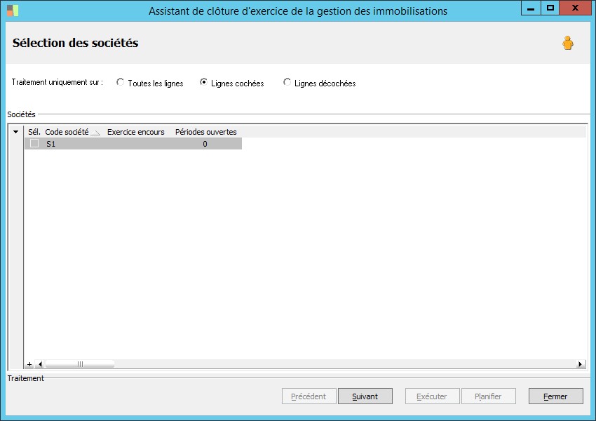 Ce paramètre permet de traiter:Toutes les sociétés,uniquement les sociétés sélectionnées,les sociétés non sélectionnées. |
