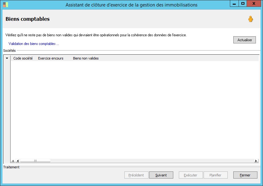 Cette zone indique le nombre de biens qui ne sont pas valide sur l'exercice en cours. |