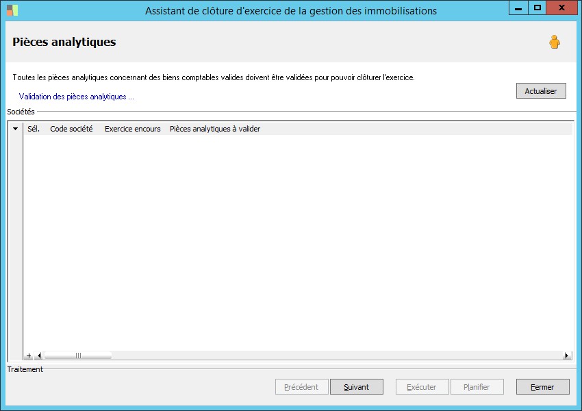 Cette zone indique le nombre de pièces analytiques à valider sur l'exercice. |