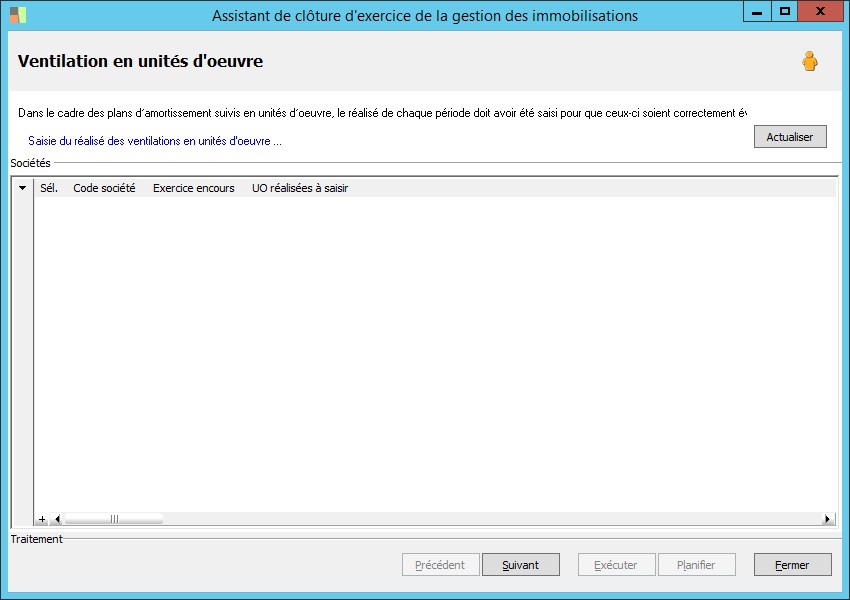 Cette zone indique si le réalisé des ventilations U.O. a été saisi ou non pour les périodes de l'exercice (si cette case est cochée, il n'est pas possible de clôturer l'exercice). |