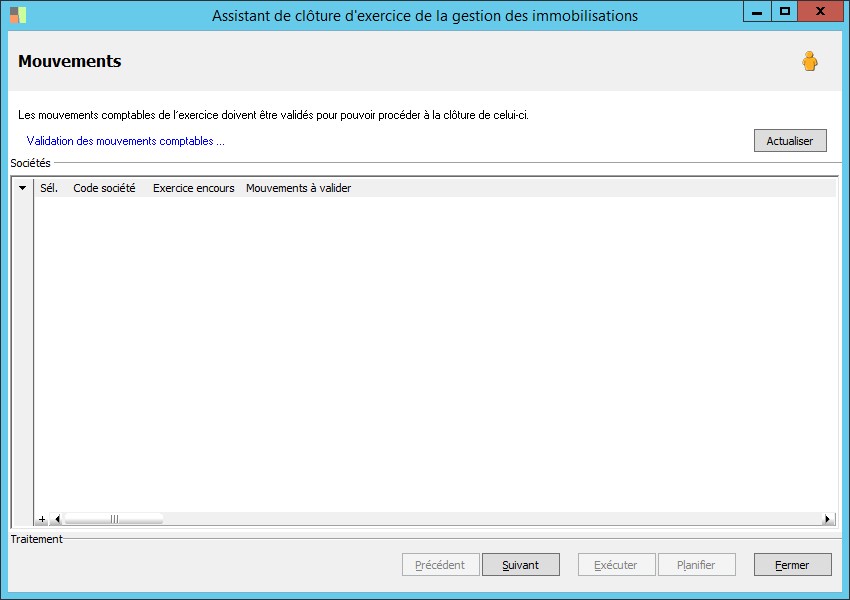 Cette zone indique qu'il existe des mouvements non validés sur la période (si la case est cochée, il n'est pas possible de clôturer l'exercice). |