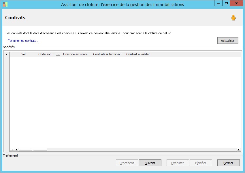 Cette zone indique le nombre de contrats à terminer sur l'exercice (contrats dont la date de fin est antérieure ou égale à la date de fin d'exercice et dont le statut est en cours). |