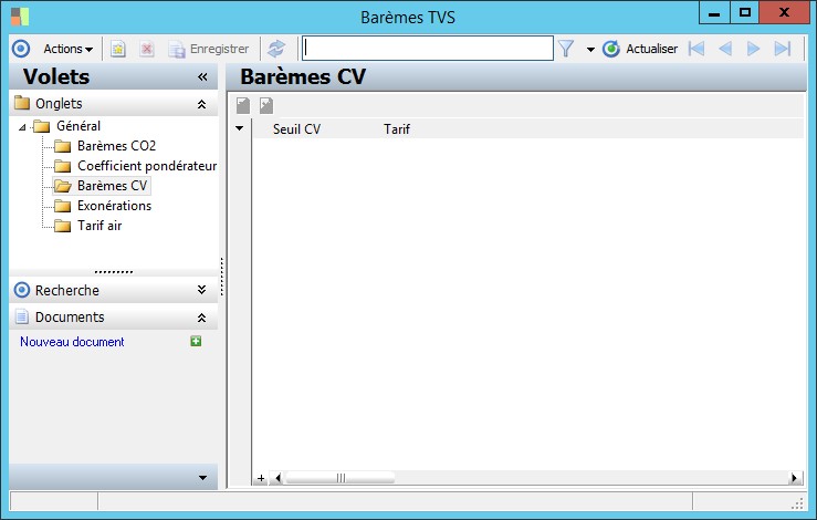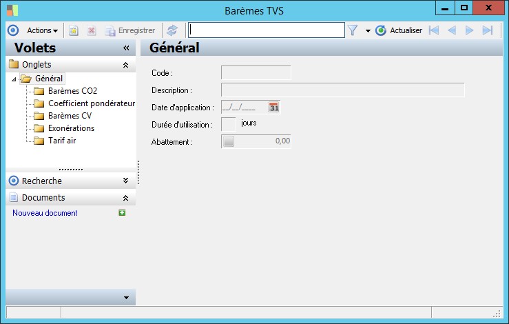 (Sage FRP 1000 Comptabilité) Menu Immobilisations > Fichiers de base > Barèmes TVS