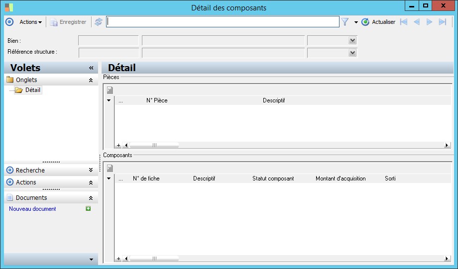 (Sage FRP 1000 Comptabilité) Menu Immobilisations > Suivi comptable > Biens > Détail des composants